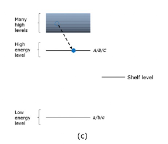 我們不禁要問一個(gè)問題:綠光在什么情況下才會比吸收?很顯然,當(dāng)電子處于基態(tài)a, b, c的時(shí)候,整個(gè)原子體系才會吸收綠光。因?yàn)?,如果電子已?jīng)處于激發(fā)態(tài)A/B/C的情況下,原子體系就不會繼續(xù)吸收光子能量了,除非電子躍遷到基態(tài)后,才會開始再次吸收綠光。
