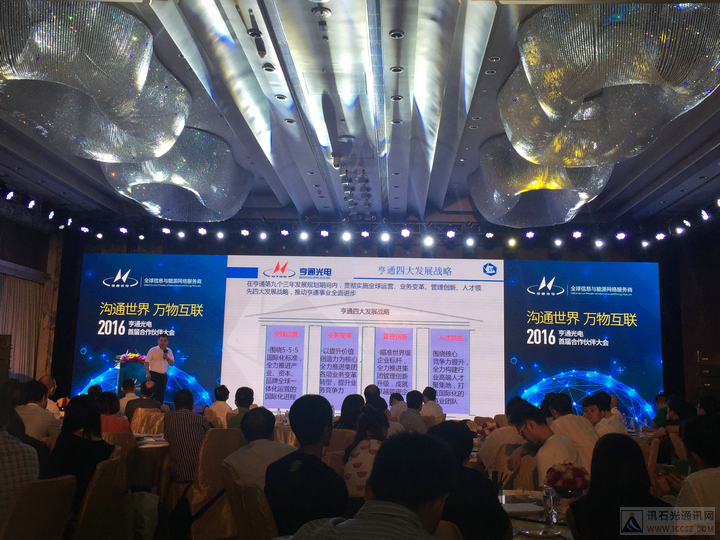 ICCSZ訊 2016年9月7日,在深圳光博會期間,亨通光電在深圳舉辦了“2016亨通首屆合作伙伴大會”。亨通光電總經理尹紀成出席會議,并發(fā)表主題演講。同時,會議得到了中國聯(lián)通、華為、南京郵電大學、上海交大、國立高雄大學等企業(yè)單位的支持!在本次會議上,還舉辦了關于“數(shù)據(jù)中心”的圓桌討論會。訊石光通訊網做為媒體合作方出席了本次會議。