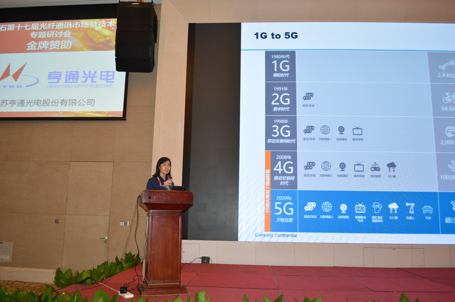 中國光電線纜的領導者亨通光電研發(fā)工程師蔣北為我們帶來了《5G光纖光纜需求與解決方案》。5G基站致密化帶來光纖巨大需求,而根據FTTH council測算5G基站所需光纖數量將是4G的16X以上。面向5G,亨通具有 適用于5G場景的高密度光纜系列,其中亨通應用5G網絡架構下前中傳、回傳光纜(氣吹微纜系列)——氣吹微纜突破了現有管道纜布放的限制,提高管道資源利用率,適合城域網擴容,FTTH/FTTB等場景.