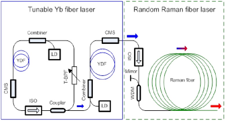圖1.超寬調(diào)諧隨機拉曼激光器的結構示意圖