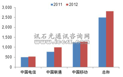 2012年中國三大運營商總資本支出為2809億元人民幣,約合340.5億歐元,而亞太地區(qū)2012年固網(wǎng)和移動系統(tǒng)資本開支總額約為1000億歐元,則2012年中國運營商總資本支出約占亞太地區(qū)的34%,約占全球運營商資本總支出的14.36%。