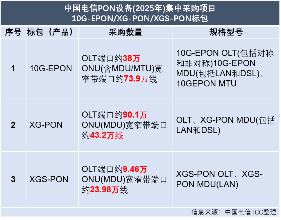 ICC訊 12月6日,中國(guó)電信發(fā)布PON設(shè)備(2025年)集中采購(gòu)項(xiàng)目10G-EPON/XG-PON/XGS-PON標(biāo)包貨物招標(biāo)資格預(yù)審公告,本次項(xiàng)目集采產(chǎn)品包括10G-EPON/XG-PON/XGS-PON OLT端口、ONU(含MDU/MTU)設(shè)備,全部為10G PON產(chǎn)品。