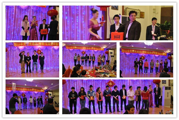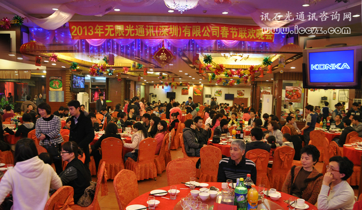 2013年1月26日晚無限光通訊(深圳)有限公司在新富門魚翅海鮮酒樓舉辦了2013年春節(jié)聯(lián)歡晚會,無限光全體員工、客戶、供應(yīng)商共三百余人歡聚一堂迎接新春的到來,訊石作為受邀媒體也參加了這次盛會。
