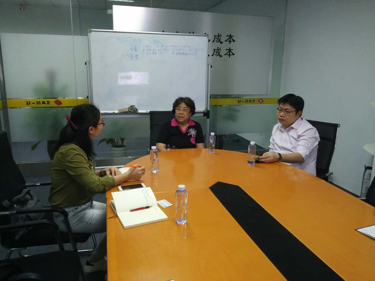三優(yōu)董事長李凌(左三)、總經(jīng)理江曉(右三)等代表與訊石記者