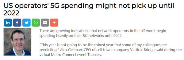 Verizon和AT&T都已經表示,他們在2021年的整體資本支出(包括在5G上的支出)將與2020年持平或略低。