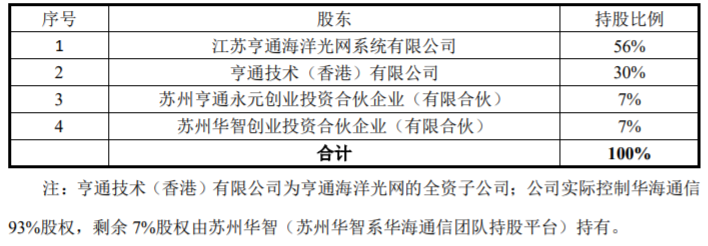 交割完成后華海通信股東及其持股比例如下: