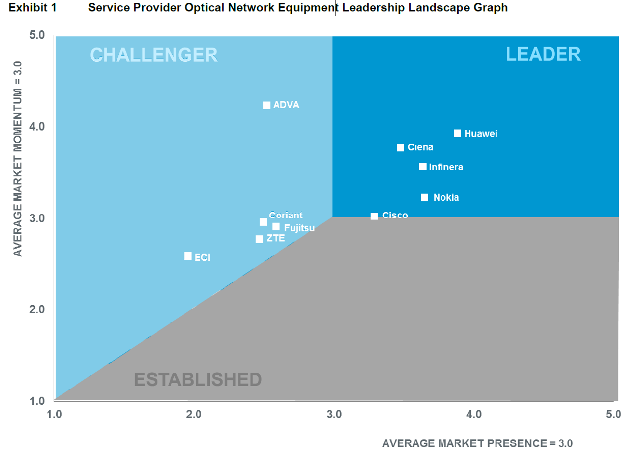 ICCSZ訊 近日,在全球領先的電信咨詢公司IHS發(fā)布的全球光網(wǎng)絡硬件供應商記分卡(以下簡稱“記分卡”)中,華為憑借其科技創(chuàng)新能力、市場潛力、市場份額等多個維度的綜合表現(xiàn),榮獲記分卡領導者象限榜首。該記分卡基于2016年全球十大光網(wǎng)絡供應商的收入數(shù)據(jù)、市場行為以及客戶反饋綜合評估各廠商的市場表現(xiàn)以及未來發(fā)展?jié)摿?,以綜合計分的方式準確評估各大廠商的綜合實力。