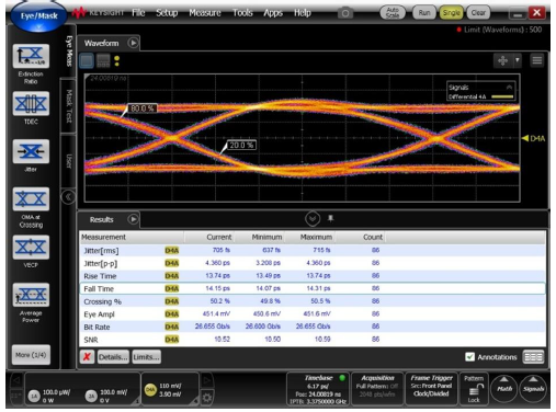體積小巧但性能穩(wěn)定的1504 和2904 已在美國被廣泛的大中型光器件生長廠商接受并在量產(chǎn)線上使用,有了廣泛性和長期穩(wěn)定性的考驗(yàn)。 與其他市場上的生產(chǎn)型誤碼儀不同的是,ESOR Engineering 的1504 (40G)和2904(100)誤碼儀提供給使用者連續(xù)性的頻率點(diǎn)測(cè)試。另外,1504 和2904 都具備強(qiáng)大的眼圖測(cè)試,顯示和實(shí)際數(shù)據(jù)顯示的功能。 這些功能不僅讓1504 和2904 的用戶有質(zhì)上的測(cè)試判斷更有的量上精確程度的把關(guān)。