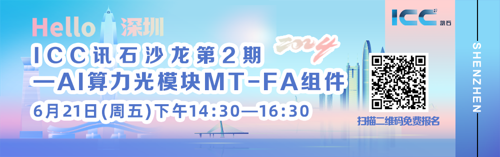 摘要:ICC訊石沙龍第2期《AI算力光模塊MT-FA組件》將于6月21日(周五)在深圳舉辦,探討數(shù)據(jù)通信應(yīng)用FA光纖陣列工藝、MT-FA組件等各類無(wú)源組件的技術(shù)創(chuàng)新和熱點(diǎn)趨勢(shì)。
