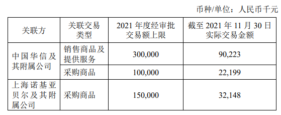 根據(jù)公告顯示,長飛光纖本次向中國華信方面銷售商品及提供服務(wù)交易金額上限為1.5億元,采購商品交易金額上限為1億元;向上海諾基亞貝爾及其附屬公司采購商品交易金額上限為1億元。