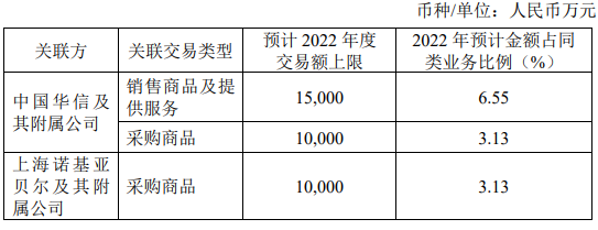 公司預(yù)計(jì)將在 2022 年度期間與關(guān)聯(lián)方發(fā)生日常關(guān)聯(lián)交易的預(yù)計(jì)金額上限如下: