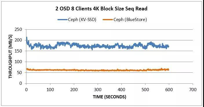 KVCeph + KV SSD vs Ceph + Block SSD (4KB sequential read)