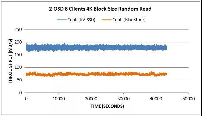 另外,由于支持原生的key value操作和簡易的軟件協(xié)議棧,KV SSD結(jié)合優(yōu)化過的Ceph應(yīng)用時也會比傳統(tǒng)解決方案有很大的優(yōu)勢。使用優(yōu)化過的KVSstore替代原生Ceph的blue store后,性能和穩(wěn)定性方面都有了很顯著的提升。