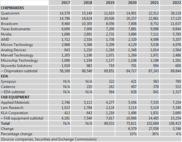 這意味著,其中一些公司今年可能會遭遇硬著陸,除非它們和它們的中國客戶能夠找到并利用允許它們繼續(xù)開展業(yè)務(wù)的漏洞。排在前列的可能是晶圓廠設(shè)備制造商和電子設(shè)計自動化軟件(EDA)開發(fā)商,美國10月7日宣布的出口法規(guī)剝奪了它們在中國的機會。