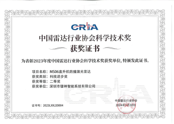 ICC訊 在航空領(lǐng)域,安全始終是首要之務(wù)。為了應(yīng)對直升機、無人機和飛行汽車等航空器在飛行過程中可能遇到的障礙物風險,深圳市鐳神智能系統(tǒng)有限公司憑借其卓越的研發(fā)實力和創(chuàng)新能力,成功推出了全球領(lǐng)先的MS06高端直升機防撞激光雷達,并在2023年度中國雷達行業(yè)協(xié)會科技獎評選中榮獲科技進步二等獎,再次證明了其在航空安全領(lǐng)域的前沿地位。