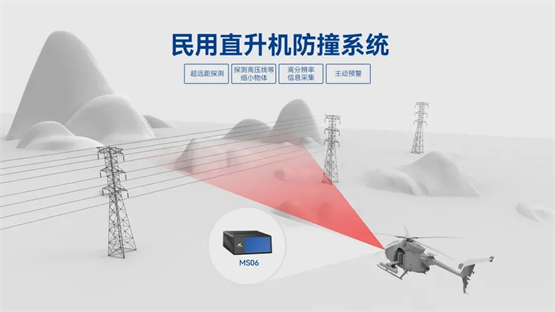 鐳神智能的MS06直升機防撞激光雷達系統(tǒng)還具有不受光照干擾、可晝夜工作的特點。無論是在強光、弱光、雨、霧、飛塵還是黑夜,它都能正常工作,為航空器的安全飛行提供全天候的保障。