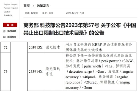 值得一提的是,在2023年底,商務(wù)部和科技部對《中國禁止出口限制出口技術(shù)目錄》(以下簡稱《目錄》)進行了修訂。在新版目錄中,“限制出口部分”對激光雷達系統(tǒng)“控制要點”進行了調(diào)整,其中探測距離>2km,旨在保護國家安全和關(guān)鍵技術(shù),促進技術(shù)創(chuàng)新和發(fā)展。這意味著,鐳神智能的MS06直升機防撞激光雷達、橋梁防撞激光測距系統(tǒng)等系列的超遠距激光雷達不僅在國內(nèi)市場具備極大優(yōu)勢,而且在國際市場上也具備強大的競爭力。