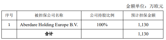 此次擬擔(dān)??偨痤~為 1,130 萬(wàn)歐元,擔(dān)保有效期為 2022 年和 2023 年。具體如下: