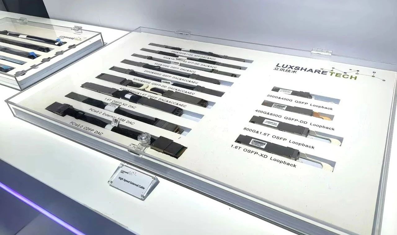 展會(huì)上,立訊技術(shù)圍繞AI智算中心的嚴(yán)苛需求,精心打造了一系列創(chuàng)新的高速互連產(chǎn)品與技術(shù)解決方案。從自定義界面的線纜背板、Chip2IO高效連接方案,到NPC連接器模組,再到引領(lǐng)潮流的AI集群光互連解決方案,立訊技術(shù)以224Gbps的應(yīng)用速率震撼全場(chǎng),并前瞻性地啟動(dòng)了448Gbps技術(shù)的預(yù)研工作。尤為引人注目的是,立訊技術(shù)已實(shí)現(xiàn)112Gbps高速互連產(chǎn)品的大規(guī)模商用,224Gbps產(chǎn)品亦步入小規(guī)模量產(chǎn)階段,并與國(guó)際頭部芯片廠商攜手,共同繪制1.6T、3.2T等下一代高速互連標(biāo)準(zhǔn)的宏偉藍(lán)圖。