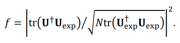 在實(shí)際設(shè)備中,由于硬件誤差,實(shí)驗(yàn)實(shí)現(xiàn)的矩陣 U_exp 與目標(biāo)矩陣 U 存在偏差,保真度可計(jì)算如下: