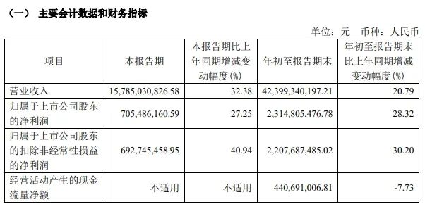 2024年第三季度,公司實現(xiàn)營業(yè)收入157.85 億元,同比增長32.38%,歸屬于上市公司股東的凈利潤7.05 億元,同比增長27.25%。報告期內(nèi),業(yè)績增長主要原因是報告期內(nèi)公司積極把握市場機遇,特高壓及電網(wǎng)智能化、工業(yè)與新能源智能、海洋能源與通信等相關(guān)業(yè)務(wù)保持了較快增長。