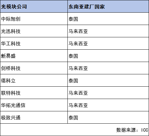在東南亞建廠的光模塊公司及所在國(guó)家