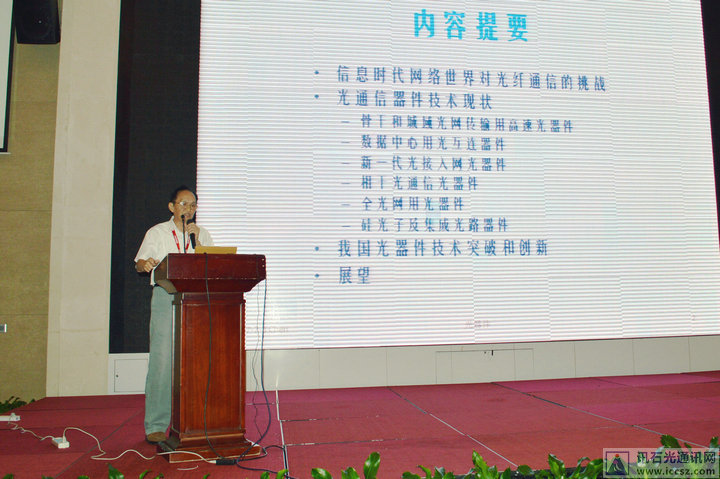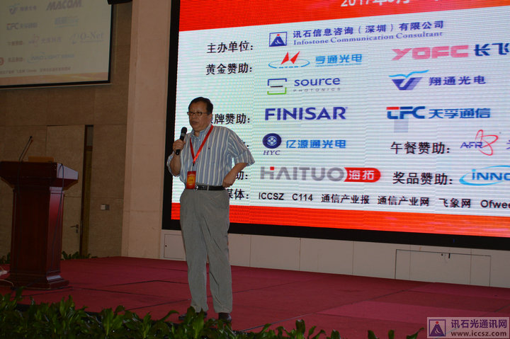 早上九點(diǎn),會議正式開始。首先為大家?guī)硌葜v的是訊石老朋友,來自上海交通大學(xué),也是IEEE終身高級會員的陳益新教授,陳教授此次演講主題為<<光通信器件的機(jī)遇和創(chuàng)新>>,陳老師談到信息時(shí)代網(wǎng)絡(luò)世界對光纖通信的挑戰(zhàn),人與物都處于數(shù)字化連接,全球經(jīng)濟(jì)結(jié)構(gòu)發(fā)生變化。我國光通信產(chǎn)業(yè)鏈的薄弱環(huán)節(jié)是光器件,光器件是新一代光網(wǎng)絡(luò)的關(guān)鍵,未來需要重點(diǎn)突破的是高端光器件。光器件的新挑戰(zhàn)將往更高速率、頻譜更寬、損耗更小、功耗更低、靈敏度更高、時(shí)延更短等方向發(fā)展。
