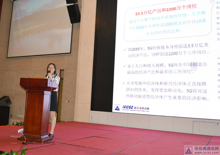 5G已是行業(yè)熱點(diǎn),國家大力推進(jìn)5G建設(shè),運(yùn)營商正與政府和企業(yè)進(jìn)行密切合作,不斷加大5G技術(shù)部署行程,據(jù)悉,中國有望在2025年前發(fā)展成為全球最大5G市場。訊石作為光通訊行業(yè)專業(yè)信息咨詢平臺,致力提供準(zhǔn)確市場信息。訊石高級分析師吳娜在4號會議后階段,帶來了《全球及中國5G市場發(fā)展現(xiàn)狀及其給光通信帶來的機(jī)遇》分析演講。其講到:5G在2035年將在全球驅(qū)動12萬億美元經(jīng)濟(jì)活動,其中信息通信行業(yè)占第二大份額11.5%,中國5G網(wǎng)絡(luò)投資到2023年達(dá)到投資頂峰,之后緩慢下滑。物聯(lián)網(wǎng)(IoT)被認(rèn)為是驅(qū)動5G發(fā)展的首要應(yīng)用驅(qū)動力,2020年5G預(yù)計(jì)正式商用,部分運(yùn)營商計(jì)劃提前商用時(shí)間至2019年。同時(shí)光網(wǎng)絡(luò)行業(yè)將是5G回程建設(shè)的主要受益者,5G時(shí)代光模塊和光纖光纜等需求量將是4G時(shí)代數(shù)倍。