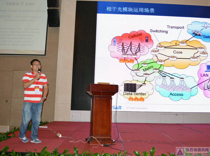 下午的第三位演講嘉賓,是來自Finisar的NPI Sr.manager 夏道劍先生,其在菲尼薩從事光模塊的設(shè)計(jì)研發(fā)和新產(chǎn)品導(dǎo)入工作,對于光模塊產(chǎn)業(yè)的歷史、現(xiàn)狀和發(fā)展有深刻的理解。在其演講<<相干光模塊發(fā)展情況>>中,夏劍道先生介紹到相干光模塊運(yùn)用場景,相干光模塊調(diào)制復(fù)雜,測試時(shí)間長,OSA工藝流程復(fù)雜,制造周期長。提到Coherent的市場預(yù)期:相對于數(shù)通市場,100G+模塊爆發(fā)式增長,Coherent增速穩(wěn)定,其市場需求包含:CFP-DCO,CFP2-DCO,CFP2-ACO和設(shè)備廠商采購分列光組件(iTLA,ICR,IQM)自行構(gòu)建的光模塊。同時(shí)對100G/200G/400G光模塊作了比較,分享長距離Long-Haul 高速傳輸解決方案相關(guān)。