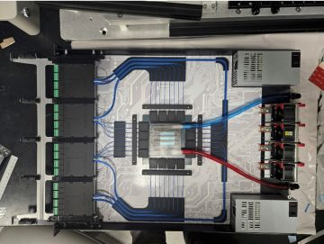 另一款參展的CPO光纖基礎實例是來自Mixx Technologies公司的基于GPU的互連系統(tǒng)。該系統(tǒng)的面板上配置了MMC連接器和可插拔激光源,采用密集排列的單模光纖與保偏光纖的混合架構(gòu),并配備了光纖管理托盤,確保光纖的配列方式便于后期維護。康寧已在多個數(shù)據(jù)中心及電信網(wǎng)絡環(huán)境中成功部署大量高密度光纖基礎設施,憑借豐富的經(jīng)驗和專業(yè)知識,能夠確保這些系統(tǒng)實現(xiàn)穩(wěn)健的規(guī)?;渴?。