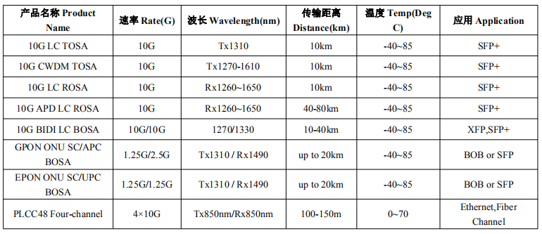 泰瑞創(chuàng)參展產(chǎn)品主要有:100G QSFP28,100G CFP/CFP2/CFP4,40G QSFP+,10G SFP+以及高速率DAC和AOC電纜; 10G LC TOSA,10G CWDM TOSA,10G LC ROSA,10G BIDI LC BOSA等。