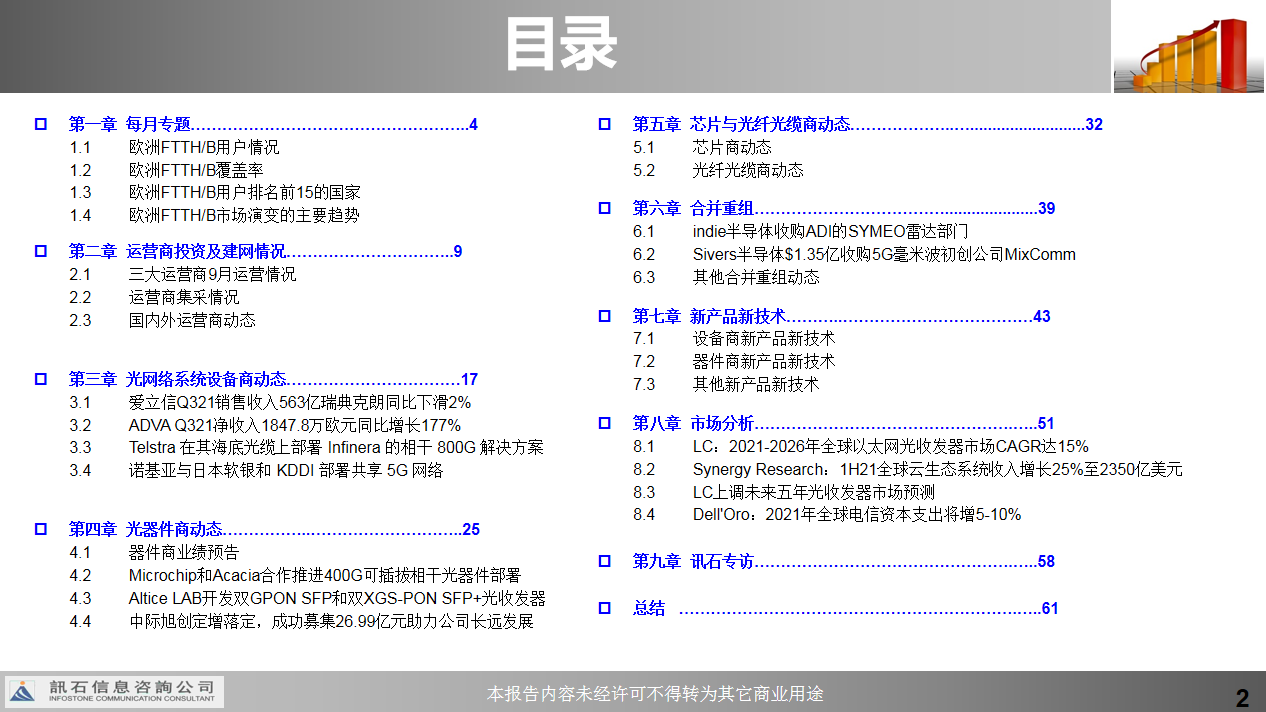 ICCSZ訊 訊石 2021年10月《全球光通訊市場(chǎng)動(dòng)態(tài)》專題月報(bào)出刊,會(huì)員公司可以通過網(wǎng)站登錄下載或者郵件接收。