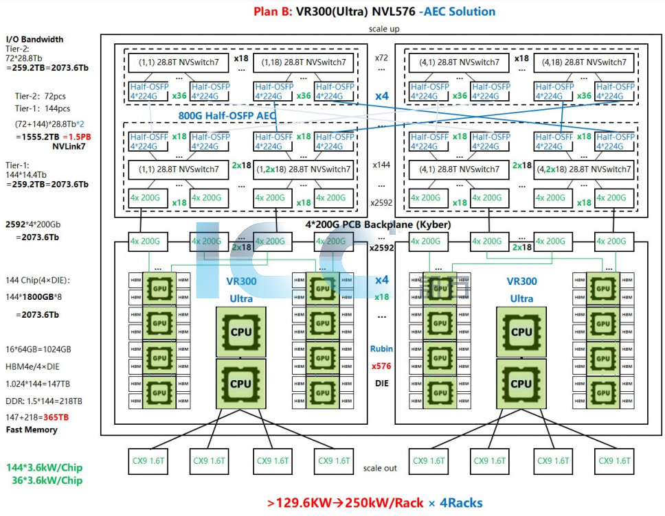 圖3、 NVLink7.0組成576卡GPU超節(jié)點(diǎn)Plan B