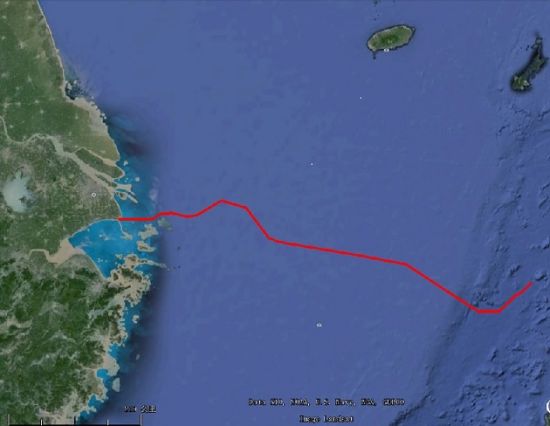工程選址位于上海臨港新城東南部海岸,登陸點處為世紀海塘,其位置在東海大橋東側(cè)約1.9km(東海大橋保護區(qū)外圍),在世紀塘路與?;方粎R處東側(cè)300m。登陸點座標為30o51.9705'N,121o55.6482'E。海纜自登陸點先向東南,與FLAG P3 海底光纜交越后至30o51.0012'N,121o56.6922'E轉(zhuǎn)向東,在FLAG P3與C2C 3B 海底光纜之間通過,先向東,至123°9.8202′E 轉(zhuǎn)向東北,至123°39.8038 'E 轉(zhuǎn)向東南,至128°23.8743′E轉(zhuǎn)向東北,直至分支點與BU1段連接,本工程路由總長738km,選用6對芯海底光纜。