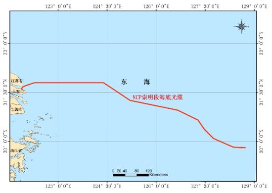 新跨太平洋海纜系統(tǒng)(NCP)網(wǎng)絡(luò)結(jié)構(gòu)為魚骨狀單支形結(jié)構(gòu),海纜網(wǎng)絡(luò)總長度約為14000km,海纜將在上海崇明、上海南匯、韓國、日本、臺灣等地區(qū)登陸。NCP南匯段工程在上海南匯臨港新城登陸后自登陸點向東敷設(shè),通過海底分支點BU1連接NCP主干光纜。