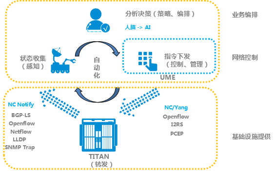 新一代OLT(光線路終端),如中興通訊的TITAN,導(dǎo)入SDN技術(shù),實現(xiàn)了控制和轉(zhuǎn)發(fā)面分離的架構(gòu),通過分層解耦,將能力分布到業(yè)務(wù)編排、網(wǎng)絡(luò)控制、基礎(chǔ)設(shè)施提供3個層面,各層面之間按能力集交付,各自獨立開發(fā)、驗證、發(fā)布。