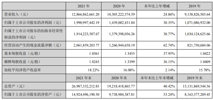 ICC訊 近日,中航光電科技股份有限公司(以下簡稱“中航光電”或“公司”)發(fā)布2021 年年度報告稱:2021年,公司緊密圍繞董事會制定的工作計劃安排,全面完成年度各項目標任務,綜合實力穩(wěn)步提升。公司經營再創(chuàng)佳績,實現營業(yè)收入128.67億元,登上百億臺階,同比增長24.86%,實現利潤總額22.67億元,同比增長34.88%。防務領域全力以赴保障生產交付,市場認可度不斷提升;通訊與工業(yè)業(yè)務調整初見成效,在智能出行、數據中心等領域取得突破;新能源汽車業(yè)務把握行業(yè)增長機遇,深化重點客戶合作、穩(wěn)步提升主流車系滲透率,訂貨實現翻番增長。
