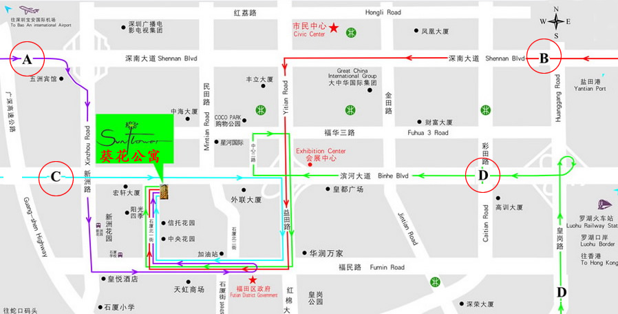 【地點(diǎn)示意圖】乘坐地鐵到石廈學(xué)校下C出口。乘坐公交到石廈學(xué)校站或新洲花園站下,步行10分鐘即到!福田區(qū)石廈北一街葵花公寓四樓陽光廳。