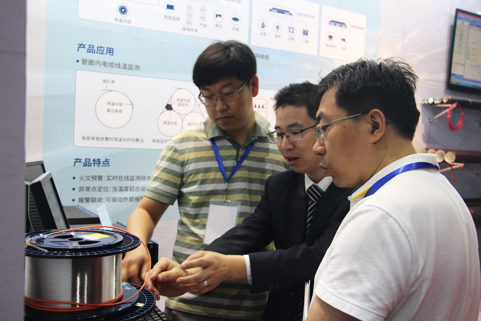 長飛公司此次展會重點(diǎn)推出的光纖傳感系統(tǒng)之分布式光纖測溫系統(tǒng),能對管廊內(nèi)的電纜運(yùn)行狀態(tài)進(jìn)行實(shí)時監(jiān)測,為有效地預(yù)防事故災(zāi)害的發(fā)生提供有力保障,是管廊綜合監(jiān)控系統(tǒng)中不可或缺的一部分。該系統(tǒng)基于電力電纜監(jiān)控中心系統(tǒng)平臺,設(shè)置了光纖測溫主機(jī)、測溫光纜和其他相關(guān)設(shè)備。測溫主機(jī)實(shí)現(xiàn)對監(jiān)測數(shù)據(jù)的采集、分析及上報工作,測溫光纜實(shí)現(xiàn)對管廊內(nèi)電纜線溫監(jiān)測及環(huán)境溫度的監(jiān)測,能有效預(yù)警火災(zāi)、異常點(diǎn)定位、報警聯(lián)動、數(shù)據(jù)分析、遠(yuǎn)程訪問等。相對于普通傳感測溫設(shè)備,光纖測溫響應(yīng)速度更快,穩(wěn)定性更好,誤報率極低,不受電磁干擾,而且能長距離監(jiān)測,使用壽命長,也易于維護(hù)。長飛展臺還模擬了綜合管廊現(xiàn)場測溫演示方案,展品一經(jīng)展出,便吸引了廣大商家及專業(yè)觀眾前來參觀咨詢,現(xiàn)場十分活躍。