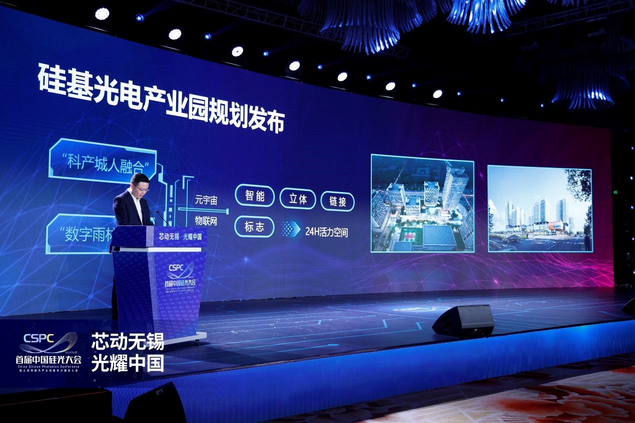 高新區(qū)黨工委委員、管委會副主任、新吳區(qū)委常委、副區(qū)長、太科園黨工委書記顧國棟介紹太湖灣硅光產(chǎn)業(yè)專項(xiàng)政策“新光18條”,以及發(fā)布硅基光電產(chǎn)業(yè)園規(guī)劃。