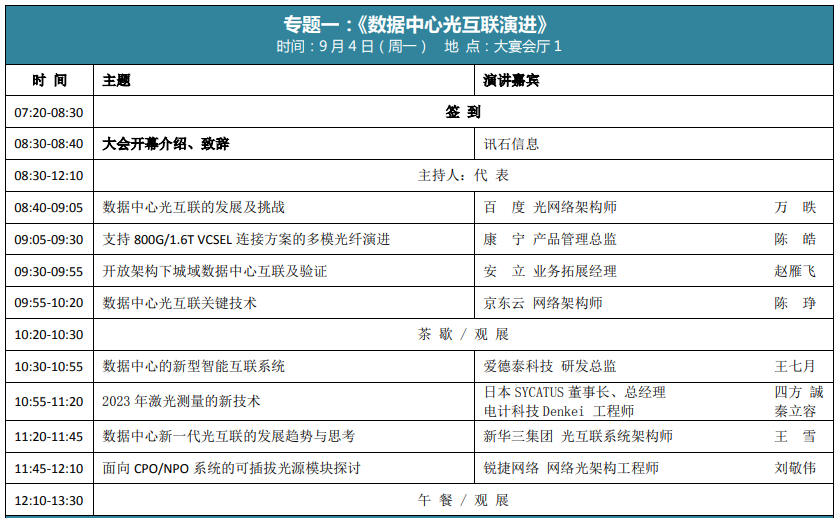 9月4日iFOC 2023第一天設(shè)立了專題《數(shù)據(jù)中心光互聯(lián)演進(jìn)》會(huì)議,特邀數(shù)通領(lǐng)域的專家探討光互聯(lián)演進(jìn)的發(fā)展以及挑戰(zhàn)等話題。