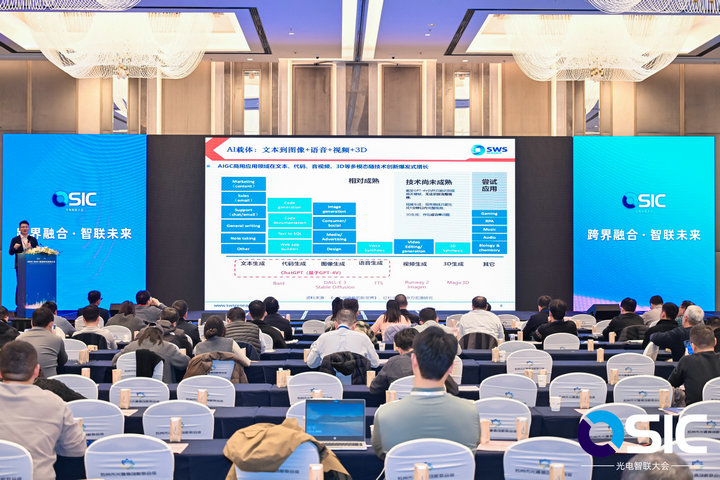 ICC訊 以AI+光電為核心,促進(jìn)光通信產(chǎn)業(yè)鏈跨界融合!OSIC 2024 第2屆光電智聯(lián)大會(huì)在12月5日在蘇州成功開幕,大會(huì)第一天探討了光電行業(yè)跨界趨勢(shì),包括低空經(jīng)濟(jì)、空天產(chǎn)業(yè)、汽車智能和機(jī)器人應(yīng)用的光電互聯(lián)。本屆大會(huì)來自光電企業(yè)、高校、投資機(jī)構(gòu)等相關(guān)參會(huì)單位突破400家,獲得了光電子、光通信行業(yè)人士的熱烈關(guān)注。