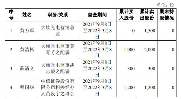 除上述相關(guān)人員外,其他內(nèi)幕信息知情自然人及其直系親屬在自查期間不存在買賣大族激光股票的情形。