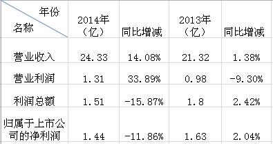 但這一季的波動并未影響大局,從光迅科技日前公布的2014年的業(yè)績快報看來,光迅科技2014年的營業(yè)總收入為24.33億元,2013年度營收21.32億元,營業(yè)收入同比增長14.08%;歸屬于上市公司股東的凈利潤為1.44億元,同比下降11.86%;營業(yè)利潤1.31億元,同比增長33.89%;利潤總額為1.51億元,同比下降15.78%。