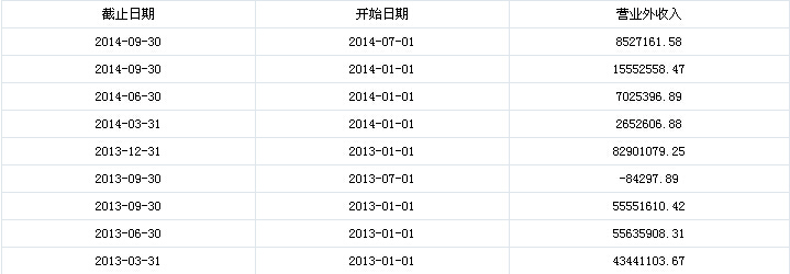 但值得注意的是,盡管營業(yè)收入和營業(yè)利潤的增幅頗大,總的利潤額卻是呈下跌的狀態(tài),從下圖中可看出,光迅科技從2013年9月開始直到2014年9月,營業(yè)外收入的波動較大,2014年間也無大起色,2014年的前三季度營業(yè)外收入相比同期下降72%,下降幅度較大,營業(yè)外收入的減少,總的利潤額也隨之下降。