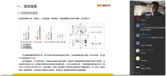 5月29日,訊石信息咨詢舉辦的線上研討會(huì)—“探討后疫情時(shí)代新基建下的光通信發(fā)展機(jī)遇”,美團(tuán)點(diǎn)評(píng)高級(jí)網(wǎng)絡(luò)工程師,數(shù)據(jù)中心專家張璋發(fā)表《數(shù)據(jù)中心演進(jìn)發(fā)展對(duì)光通信器件模塊的影響》線上報(bào)告,介紹了網(wǎng)絡(luò)演進(jìn)對(duì)光模塊的影響,以及站在大型數(shù)據(jù)中心的角度看待光模塊運(yùn)維管理。
