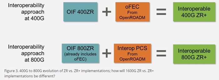 圖 3. 400G 到 800G 時代 ZR 與 ZR + 實現(xiàn)方式的演進;1600G ZR 與 ZR + 的實現(xiàn)方式會有何不同?