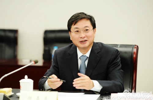 中國聯(lián)通陸益民總經(jīng)理在簽約儀式上致歡迎辭 (綜合部王玉君攝)