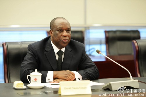 中國聯(lián)通陸益民總經(jīng)理、喀麥隆電信大衛(wèi)·恩科特總經(jīng)理共同出席簽約儀式(綜合部王玉君攝)
