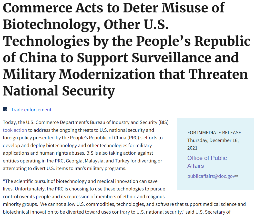 ICC訊 當(dāng)?shù)貢r間周四早晨,美國商務(wù)部工業(yè)與安全局(BIS)發(fā)布公告稱,將位于中國、格魯吉亞、馬來西亞和土耳其的數(shù)十個實體列入所謂“實體清單”(Entity List),其中有34個實體位于中國。